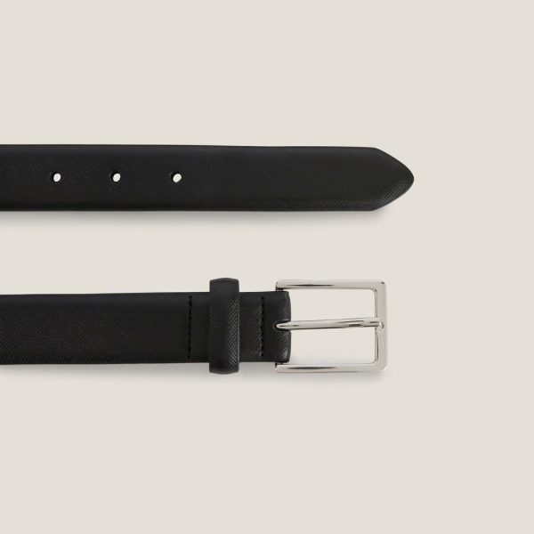 Jules Ceinture Et Bretelles | Ceinture En Cuir Saffiano Avec Boucle Noir Noir Homme