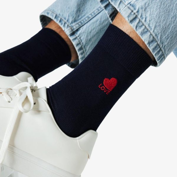 Célébrez la Saint-Valentin avec style grâce à ces chaussettes hautes. Idéal pour un cadeau remplit d’amour avec sa broderie coeur sur la cheville.