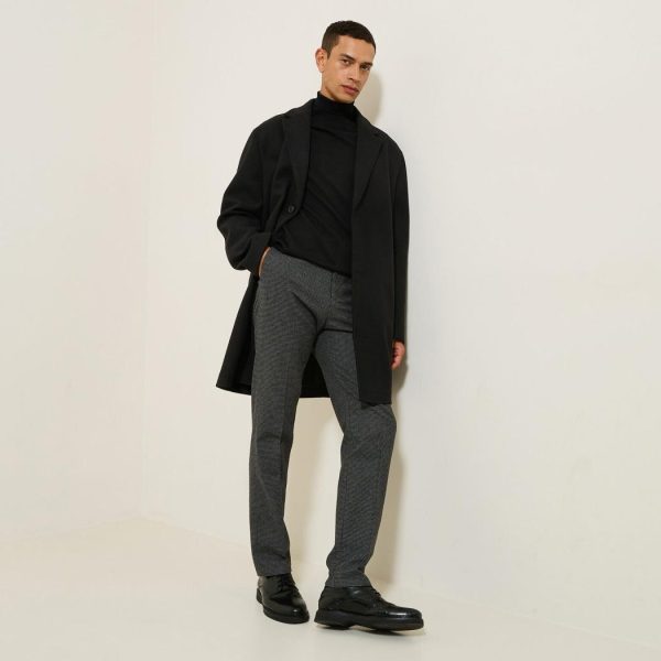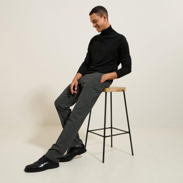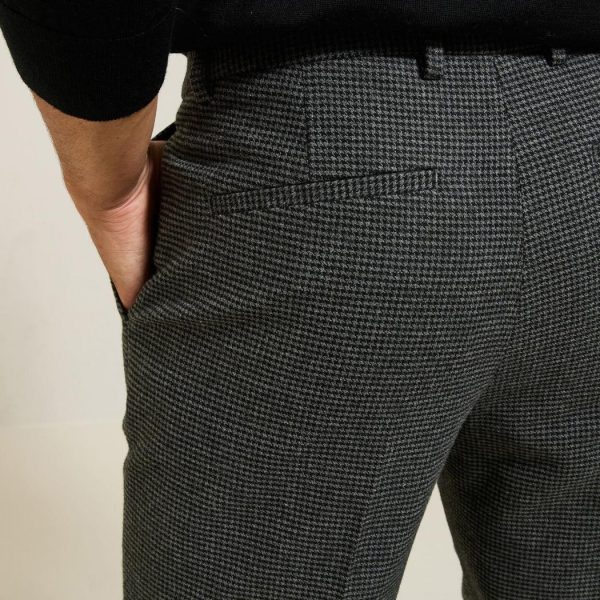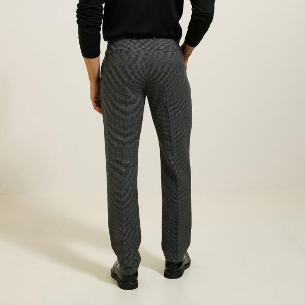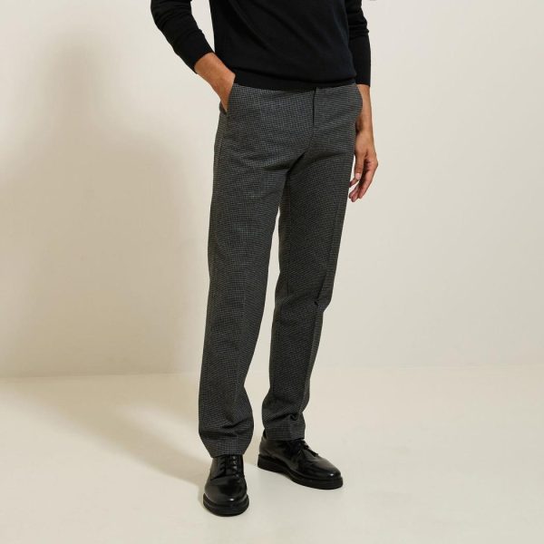 Ce pantalon regular à motif pied de puce discret est idéal pour un look élégant et moderne. Doté de poches latérales et arrière, il allie style et praticité.