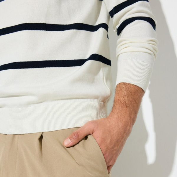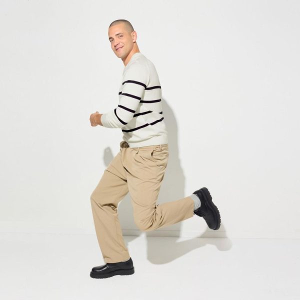 Ce pull à rayures contrastées peut se porter avec un jean ou un chino, c’est comme vous voulez ! Sa matière est chaude et confortable.