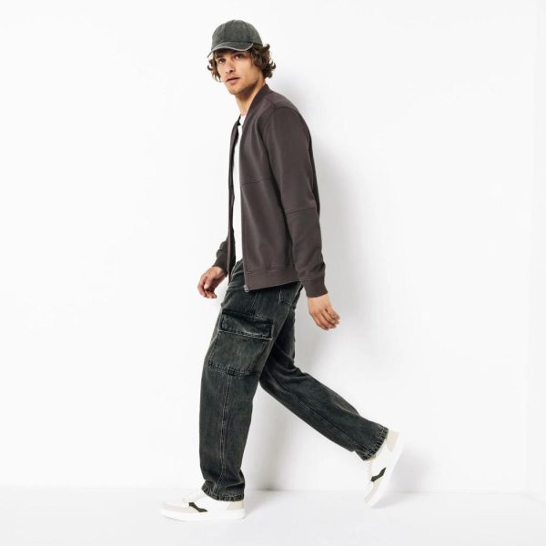 Ce sweat zippé à manches longues affiche un look décontracté avec son effet délavé.