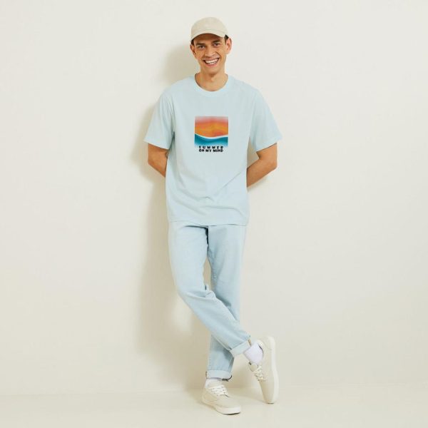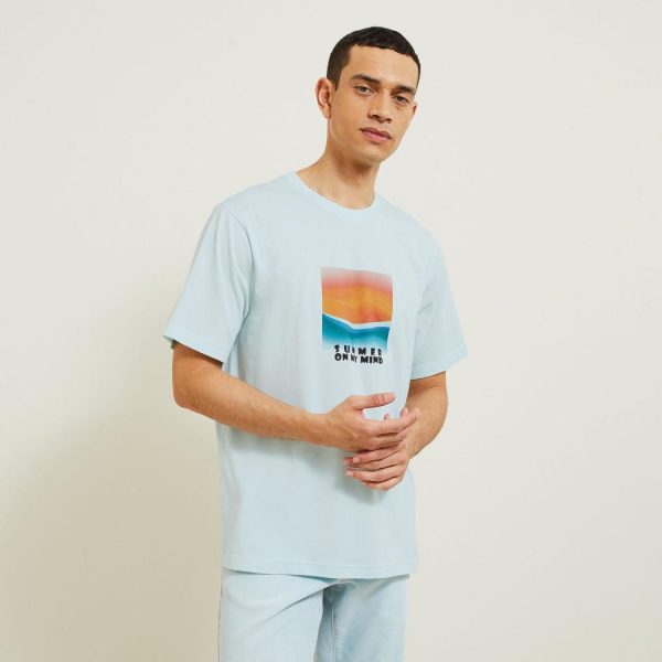 Jules T-Shirt | Tee Shirt Col Rond Imprimé Paysage Bleu Clair Bleu Clair Homme