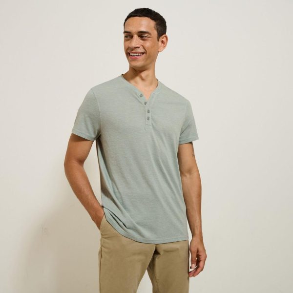 Jules T-Shirt | Tee Shirt Slim Col Tunisien Vert Kaki Vert Kaki Homme